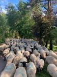 Die Schwarzkopf-Schafherde von Oliver Schwab auf dem Heimweg (Bild: Oliver Schwab)