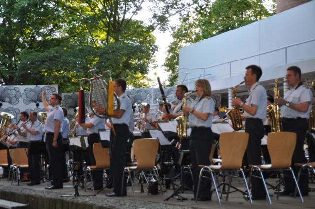 Dass die USA das Heimatland der perfekten Show sind, bewiesen nach der Pause die Mitglieder der 380th Army Band. Die Musiker/Innen, die, im Unterschied zu ihren deutschen Kollegen (m/w), zum Großteil nicht mehr aktive Militärs sind, sondern anderen Berufen nachgehen, treffen sich lediglich zweimal monatlich zum Proben. Zwei Wochen im Jahr geht die Kapelle dann auf große Tournee. Auf der diesjährigen Reise war ihnen ihr gesamtes Gepäck abhanden gekommen, so dass die unermüdlichen Musiker nicht nur in geliehenen Kleidern sondern auch mit geliehenen Instrumenten auf der Breisacher Festspielbühne saßen. Davon war während des Konzertes allerdings nicht das Geringste zu merken. Von Gershwin bis zum italienischen Volkslied begeisterte die Kapelle, die abwechselnd unter weiblicher und männlicher Leitung spielte. Besonders beeindruckt war das Publikum vom Gesangsolo „Someone to watch over me" zur Melodie "As time goes by" aus dem Filmklassiker „Casablanca“ und einem ebenso sensationellen Posaunensolo. Leider konnten die 380th US Army Band den Zuhörern den Wunsch nach einer Zugabe nicht mehr erfüllen, da sie neben dem verlorenen Gepäck nicht auch noch einen verpassten Bus in die Reihe der Tourmissgeschicke 2010 mit aufnehmen wollten.