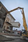 Für den eigentlichen Spatenstich hatten sich die Veranstalter etwas Besonderes ausgedacht. Da es sich ja nicht um einen Neubau im eigentlichen Sinne sondern um einen Ab- und Umbau handelt, wurden nicht wie üblich die Honoratioren mit Bauhelm und Spaten auf einen Erdhügel gestellt. Mit einem monströsen Baggerungetüm durften erst Bürgermeister Oliver Rein für die Stadt und im Anschluss Wilfried Dörr für den Badischen Winzerkeller am Stahlbeton der zukünftigen Lofthäuser knabbern. In den Männern erwachten rasch die Buben zum Leben und hätte der Baggerführer von Keune Bau die Herren nicht unter Kontrolle gehabt, hätte sich die Sache mit den formschönen Wohngebäuden innerhalb weniger Stunden wohl erledigt. Mittels dinoartiger Riesenfresszange konnte, so machte es zumindest kurz den Anschein, insbesondere Breisachs Bürgermeister nicht genug davon bekommen, dem halsstarrigen Gebäude an die Substanz zu gehen. Der Baggerehrenpreis von Volker Homann jedenfalls ging neidlos an das Stadtoberhaupt.