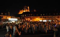 Auf dem Sammelplatz vor dem Narrenherrschaftssitz im Breisacher Rathaus hatten sich neben buntgefleckten Gauklern und immergrünen Zunfträten allerhand weißgewandete Untertanen versammelt, um zu den Klängen des Breisacher Narrenmarsches auf verschlungenen Pfaden zum Marktplatz zu wandeln. Am Gutgesellentor wurden die Umzugsteilnehmer musikalisch von den „Bajakl Schnäpfen“ in Empfang genommen. Mit neuer musikalischer Energie ging es dann bis auf den Marktplatz, wo auf den bereits für die Gauklertage errichteten Tribünen die Musiker/Innen der Stadtmusik, der „Schädelfätzer“ und der „Bajakl Schnäpfen“ sich selbst und den Umstehenden kräftig einheizten. Anschließend verlief sich der Umzug in ungeordneter Formation in den Breisacher Gaststätten, um, trotz der Schlafanzüge und Nachtmützen, dem Bett möglichst lange fern zu bleiben.
