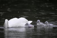 Schwanengeburt: Vier junge Singschwäne in Umkirchs Queen-Auguste-Victoria-Park (Bild: Achim Keller)