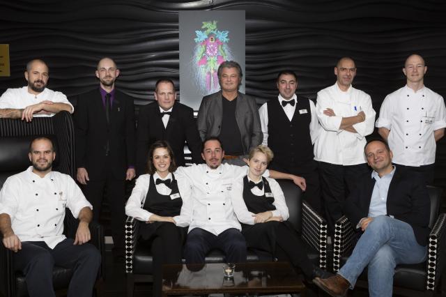 Foto Ralf Deckert hintere Reihe v. l.: Oliver Rausch, (Küchenchef „s´Herrehus“ bzw. künftig „Regional“), Pascal Ruf (Stellv. Hoteldirektor), Michel Schilling (Serviceleiter), René Gessler (Hotelier), Adriano Personé (Serviceleitung), Peter Bürgin (KüchenchefBankettküche), Oliver Fritzsche (Sous-Chef „s´Badische Wirtshus“ bzw. künftig „Cross-over“). Vordere Reihe v. l.: Christian Koch (SousChef „s´Herrehus“ bzw. künftig „Regional“), Lisa-Maria Jahn (Bankettleitung), Giuseppe Bianchimani (Küchenleitung „Limoncello“ bezw. künftig „Vivothek“), Isabella Schneider (Serviceleitung„Limoncello“ bzw. künftig „Vivothek“), Johannes Gessler (Geschäftsführer). Küchenchef René Büscher