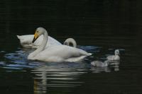 Schwanengeburt: Vier junge Singschwäne in Umkirchs Queen-Auguste-Victoria-Park (Bild: Regionalia)
