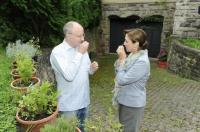 Geruchs-Proben: Schauspielerin Christine Kaufmann riecht mit Parkschöpfer Werner Semmler an seinen Duft-Kräutern (Bild: Achim Keller)