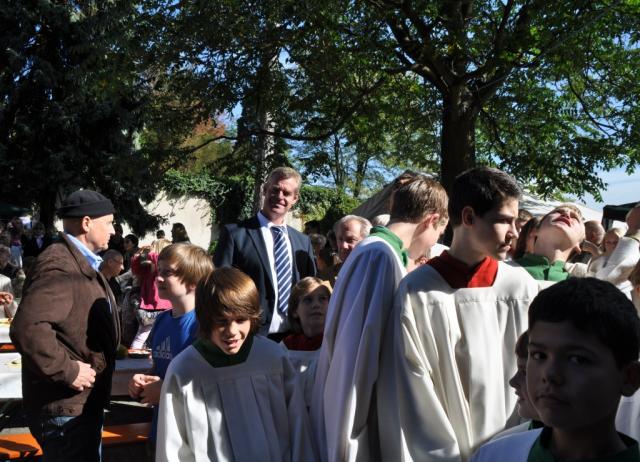 Hoch hinaus beim Pfarrfest! - Segnen und Setzen der Turmkreuze von St. Stephan  3251  04.10.2010