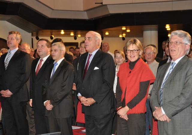 Andächtig beim Badnerlied: Oliver Rein, Stefan Mappus, Dr. Patrick Rapp, Gundolf Fleischer, Dorothea Störr- Ritter, Alfred Vonarb