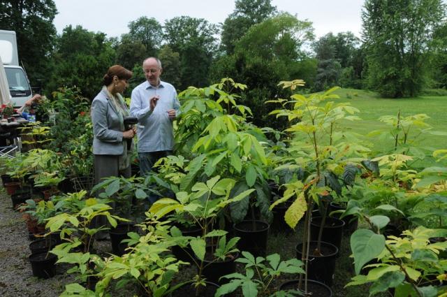 Während der Drehpausen lässt sich Christine Kaufmann die jungen "Baum-Kinder" von Werner Semmler zeigen