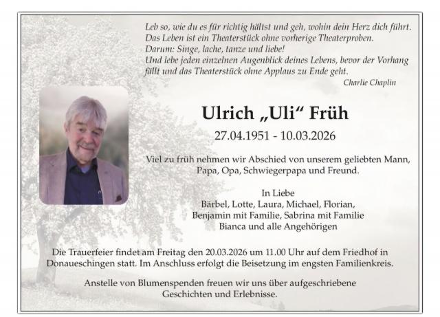Traueranzeige für Ulrich Früh