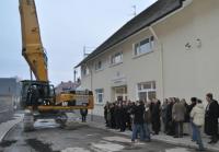 Eigentlich eher ein Durchbruch denn ein Spatenstich wurde am Montag, den 24. Januar 2011, in der Breisacher Muggensturmstraße gefeiert. Die Freiburger Treubau AG, die für große Teile der Bebauung auf dem Areal des „Alten Winzerkellers“ verantwortlich ist, hatte Baubeteiligte, lokale Politiker/Innen und vor allem auch die Anlieger (m/w) der Großbaustelle zu einer stilvollen Baustellenparty in das „Kochstudio“ neben den zukünftigen Wohnhäusern eingeladen. Statt des obligaten Spatenstichs durfte mit einem Riesenbagger an Beton geknabbert werden.
