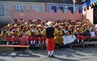 Wer die beiden Zunftabende in der Stadthalle verpasst hatte, kam nun unter freiem Himmel in den Genuss der Darbietungen, die mit dem Gardetanz der Zunftgarde eröffnet wurden. Unter den Klängen der Stadtmusik zeigten die Mädels unter Leitung von Christina Maier, wie Tanzen ausehen kann, wenn man Tanzen kann.
