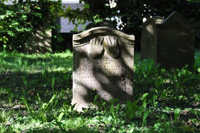Grabstein auf dem Alten Friedhof: "Segnende Hände der Kohanim"