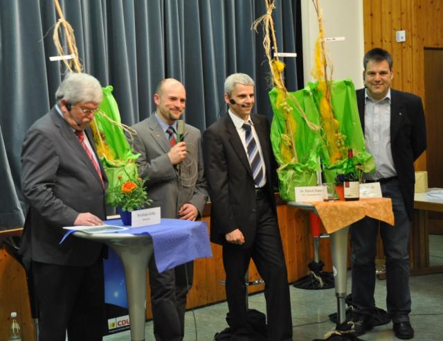 Hier kein Anbaustopp! Andreas Hoffmann (mit Mikro) dankt den Diskussionsteilnehmern mit Jungrebe