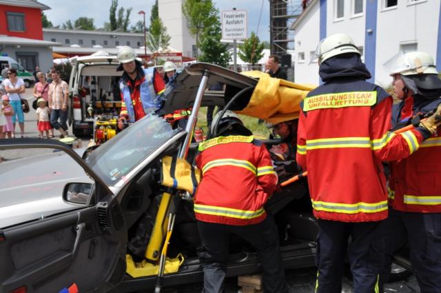 Im Rahmen des großen Jubiläumswochenendes zum 150jährigen Bestehen der Freiwilligen Feuerwehr Breisach vom 04. bis 07. Juni 2010 gab es neben Bratwurst und Blasmusik auch zahlreiche Vorführungen, um den Besuchern (m/w) des Festes die Arbeit der Feuerwehr vor Augen zu führen. Unter anderem demonstrierten die Männer und Frauen von DRK und Feuerwehr die Bergung eines eingeklemmten Unfallopfers aus seinem Fahrzeug.