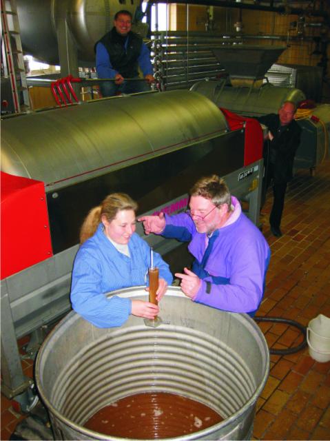 Und Kellermeister Jörg Wiedemann oben auf der Presse und Georg Kaufmann halten die Presse in Betrieb. Mit weiteren Eisweinen aus den verschiedenen Mitgliedsgenossenschaften des Badischen Winzerkellers ist in den nächsten Tagen zu rechnen. "Wir freuen uns", so die Botschaft aus der Zentralkellerei.