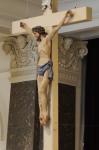 Das Kreuz der Christenheit hängt über den Verstorbenen und den Lebenden: In der Einsegnungshalle des Friedhofdoms zu Freiburg. (Bild: Regionalia)