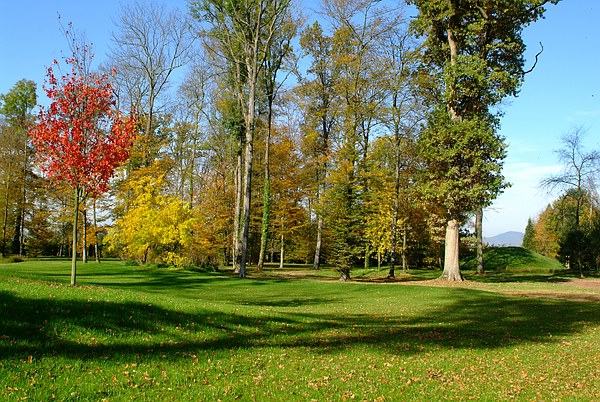 Die Bäume sind schon kahl geworden: der Queen-Auguste-Victoria-Park mit dem Blick zum Kaiserstuhl