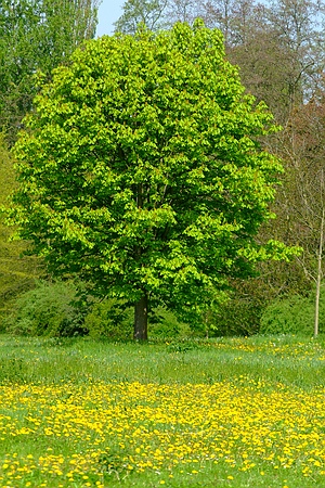 Der Mai ist gekommen und die Bäume schlagen aus. Schlosswiese im Queen-Auguste-Victoria-Park