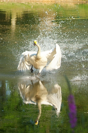 Queen-Auguste-Victoria-Park: Der Singschwan hat sich gewaschen und ein bezauberendes Foto geliefert