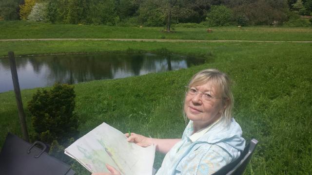 Gabriele Burgmann malt den Queen-Augste-Victoria-Park Umkirch