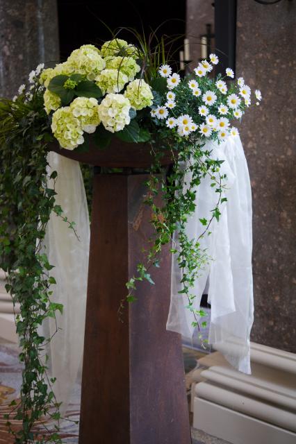 Blumenschmuck in der Einsegnungshalle des Friedhofsdoms Freiburg