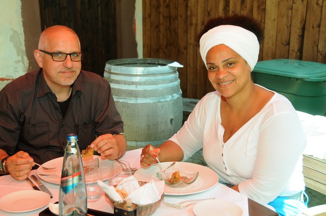 Essen in Gottenheim wie Gott in Frankreich: Jazz-Sängerin Cécile Verny und Bassist Bernd Heitzler wissen, dass es bei Fischers schmeckt.