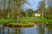 Gartenkunst im Queen-Auguste-Victoria-Park: Die Insel im Weiher und das Schloss im Spiegel des Wassers (Bild: Regionalia)