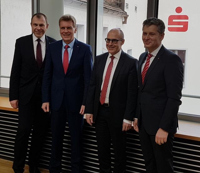 Sparkassen-Freiburg: Bernd Rigl (Vorstandsmitglied, Firmenkundengeschäft) Marcel Thimm (Vorstandsvorsitzender, Gesamtbanksteuerung) Erich Greil (Stv. Vorstandsvorsitzender, Privatkundengeschäft) Lars Hopp (Vorstandsmitglied, Interne Dienste) (Bild: Regionalia)