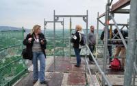 Staunende Presse! Steinmetzmeister Dietmar Baader (hinten Mitte) beantwortet Fragen in luftiger Höhe (Bild: J. W. Steckmeister)