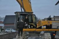 Für den eigentlichen Spatenstich hatten sich die Veranstalter etwas Besonderes ausgedacht. Da es sich ja nicht um einen Neubau im eigentlichen Sinne sondern um einen Ab- und Umbau handelt, wurden nicht wie üblich die Honoratioren mit Bauhelm und Spaten auf einen Erdhügel gestellt. Mit einem monströsen Baggerungetüm durften erst Bürgermeister Oliver Rein für die Stadt und im Anschluss Wilfried Dörr für den Badischen Winzerkeller am Stahlbeton der zukünftigen Lofthäuser knabbern. In den Männern erwachten rasch die Buben zum Leben und hätte der Baggerführer von Keune Bau die Herren nicht unter Kontrolle gehabt, hätte sich die Sache mit den formschönen Wohngebäuden innerhalb weniger Stunden wohl erledigt. Mittels dinoartiger Riesenfresszange konnte, so machte es zumindest kurz den Anschein, insbesondere Breisachs Bürgermeister nicht genug davon bekommen, dem halsstarrigen Gebäude an die Substanz zu gehen. Der Baggerehrenpreis von Volker Homann jedenfalls ging neidlos an das Stadtoberhaupt.