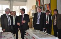 Seit 173 Jahren stellt die Firma Erismann Tapeten her. Neben dem Werk in Breisach, das bereits seit 1883 an verschiedenen Standorten die meist farbenfrohe Wandzier produziert, betreibt der Tapetenriese seit 2003 ein Werk im Moskauer Vorort Woskressensk. Dies ist nahe liegend, erläuterte der Geschäftsführer Peter Bercher, der die Delegation rund um den Minister zusammen mit Geschäftsführer Martin Slotty in den Räumen der Tapetenfabrik an der Rheinstraße begrüßte. 65% der Tapeten gehen in den Export, der Großteil davon ins Tapetenland Russland. Und da Tapeten ein sperriges Gut sind, lag es nahe, diese vor Ort zu produzieren. Neben Tapeten aller Couleur, die von einer eigenen Design- Abteilung entworfen, stets den neusten Modetrends folgen, setzt Erismann seit dem Jahr 2010 auf 100% Phthalate freie Wandbehänge, die sogar den strengen Kriterien für Babyspielzeug genügen. Die Traditionsfirma geht also auch in dieser Hinsicht mit der Zeit.