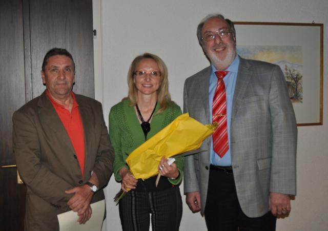 Rund 1000 Blutkonserven werden pro Woche allein in Baden- Württemberg gebraucht. Aktuell herrscht vor allem in Südbaden akuter Blutkonservenmangel. Dies beklagt unter anderem die Uniklinik Freiburg. Auf den Engpass wies, auch in Bezug auf die näher rückende Urlaubssaison, Ortsvorsteher Wendelin Hintereck hin. Umso mehr freute sich Niederrimsingens Gemeindeoberhaupt Angelika Gippert für 10maliges unentgeltliches Blutspenden die Goldene Ehrennadel des DRK überreichen zu können. Neben Nadel und Urkunde gab es vom DRK- Ortsvorsitzenden Bernhard Müller noch einen prächtigen Blumenstrauß für die Spenderin.