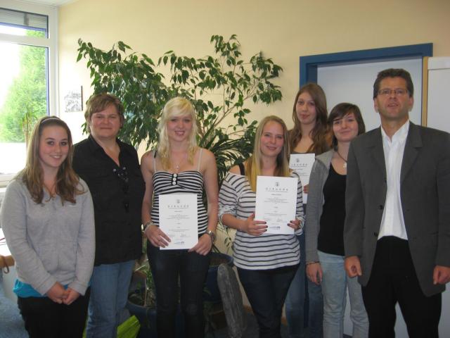 In einer feierlichen Runde wurden am Donnerstag, den 12.Mai 2011, die fünf Preisträgerinnen des 41. „jugend kreativ“- Wettbewerbs der Volksbanken und Raiffeisenbanken durch den Schulleiter der Hugo- Höfler Realschule, Dr. Christoph Wolk, und Fachlehrerin Sonja Klenk geehrt. Die Schülerinnen Marina Göpfert und Marsha Haasis aus der 7b haben in der Alterskategorie IV den dritten und ersten Platz belegt. Die Schülerinnen Nadine Großklaus, Melissa von Kohnle (beide 10f / Plätze 3 und 2) und Jessica Nowak (10c / erster Platz) waren die Preisträgerinnen in der Alterskategorie V.