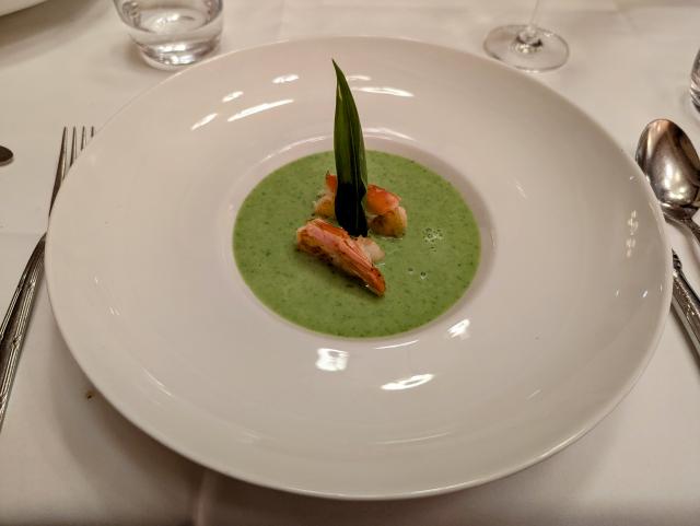 Feine Kartoffel-Bärlauchsuppe mit Rotgarnele