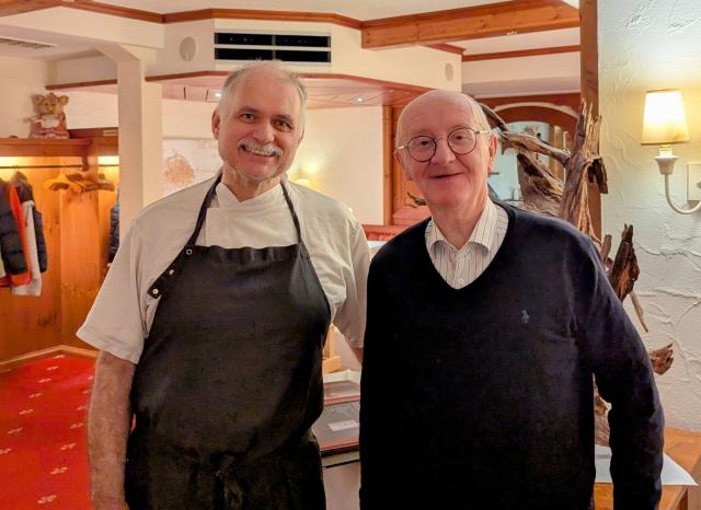 Küchenchef Gregor Schlüter mit Restaurant-Kriker Werner Semmler im Romantik-Hotell Rindenmühle in Villingen