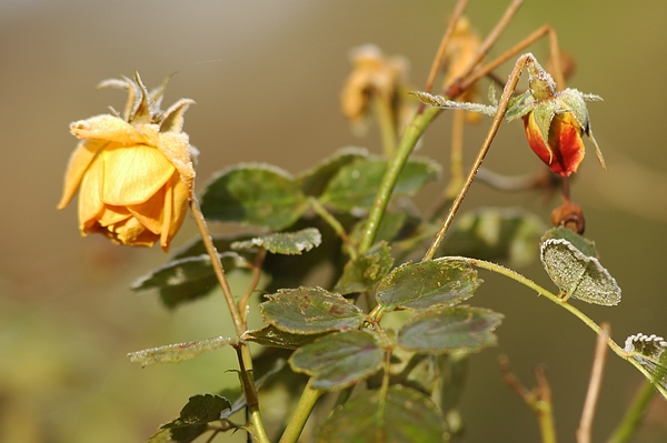 Es blüht eine Rose zur Weihnachtszeit: Englische Duftrose im Eis des Queen-Auguste-Victoria-Park