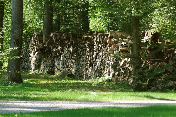 Der alte Holzstoß bleibt und wird nicht verbrannt: Er hat seinen Sinn als natürliches "Haus" der Vögel und Insekten.