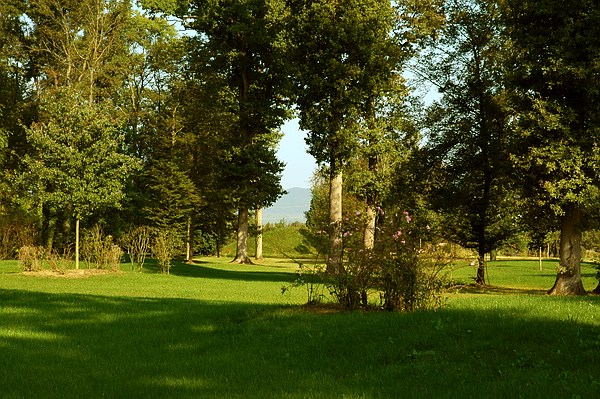 Das geöffnete "Gotische Fenster" des Parkschöpfers: Durchblick vom Queen-Auguste-Victoria-Park zum Kaiserstuhl