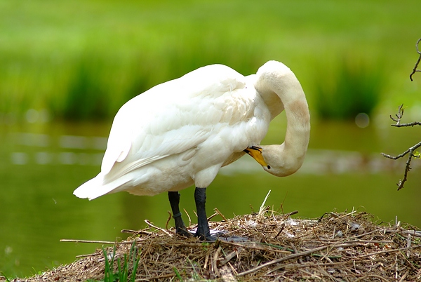 Die Sing-Schwan-Mutter auf ihrem Nest im Queen-Auguste-Victoria-Park