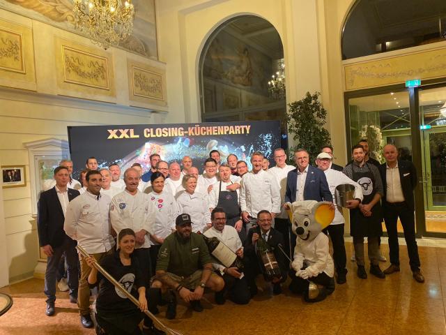 Europa-Park-Chef Roland Mack im Kreis seiner Star-Köche nach der Küchenparty.