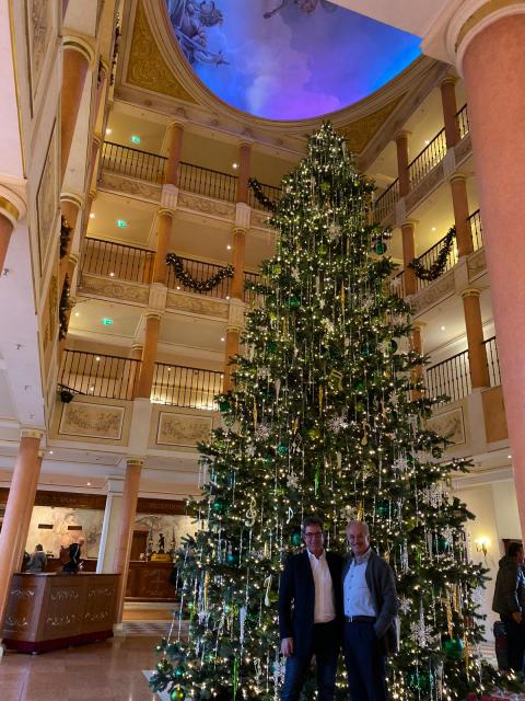 Badens heimlicher Rotwein-Picasso Mario Burkhart und Freiburgs bester Italiener Francesco Caridi nach der Weinverkostung im Colosseo des Europa-Parks.