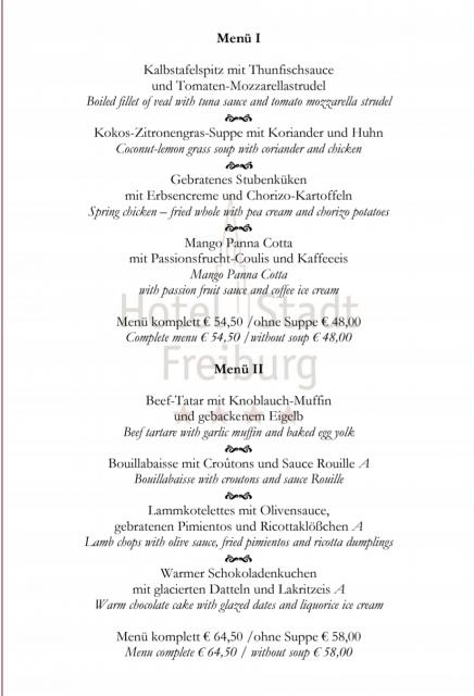Zwei große Menüs von von Spitzenkoch Matthias Dahlinger im Hotel Stadt Freiburg