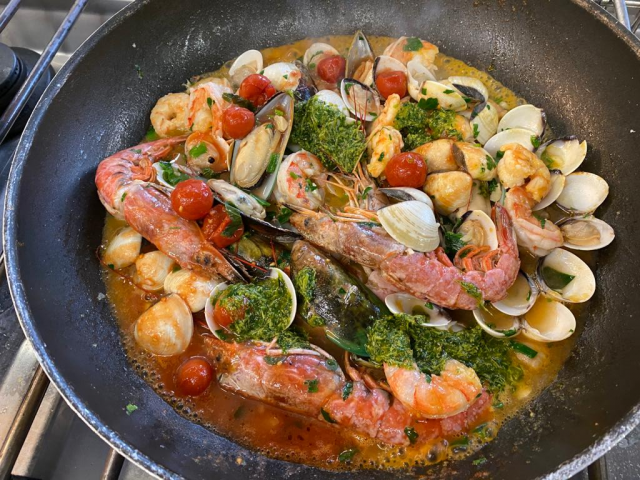 Francesco Caridi ist ein Meister für die Zubvereitung von leckeren Meeresfrüchten