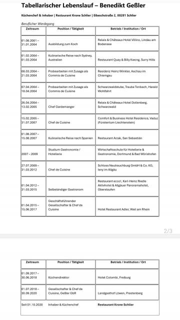 Beruflicher Lebenslauf des Gourmet-Kochs Benedikt Geßler