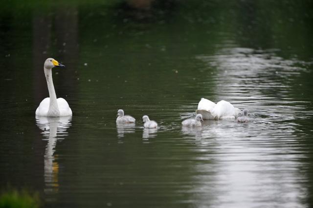 Schwanengeburt: Vier junge Singschwäne in Umkirchs Queen-Auguste-Victoria-Park