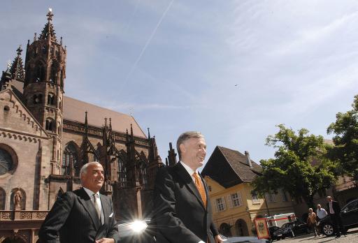 Bundespräsident Horst Köhler vor dem Freiburger Münster mit Gundolf Fleischer