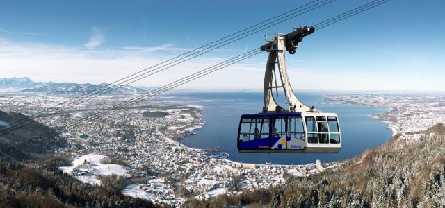 Die Pfänderbahn mit dem Ausblick auf den Bodensee im Winter