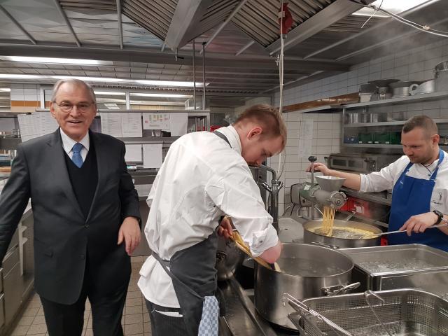 Im Colombi-Hotel kommendie die begehrten Spätzle nicht in der Tüte, aus der Fabrik, sie werden selbst geschabt, wie hier von Küchenmchef Sven Usinger.