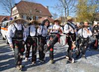 Den Auftakt bildete das Gardebalett des UNC, gefolgt von der Umkircher Guggenmusik „Schräg & Lutt“, die ihrem Namen auch beim Rosenmontagszug alle Ehre machte. Bonbons oder eine wohltuende Konfetti- Massage gab es von den UNC- Traditionsfiguren Hexen und Esel, die besonders durch ihre schön- schrägen Holzmasken bestechen. Direkt vom Heuele Wald waren die „Heuele Waldmärre“ in die Hauptstraße gekommen. Ihre Kostüme ermöglichen einen interessanten Einblick in die Flora der berühmten Umkircher Wälder. Auf Safari begaben sich anläßlich der Fasnacht die Mitglieder des VfR Umkirch. Um aber nicht gänzlich auf die Segnungen der Zivilisation verzichten zu müssen, hatten sie eine Art Wohnwagen im Schlepptau. Ganz schön gruslig und etwas ungekämmt kamen die „Hugenwaldteufel“ aus Waldkrich daher. Vermutlich schauen sie deshalb so grimmig, weil hinter ihrem beliebten Hugenwaldtunnel immer nervige Geschwindigkeitskontrollen stattfinden. Mindestens ebenso ruppig sind die „Bosensteiner Höllenknechte“ aus Ottenhöfen drauf, obwol hier über Geschwindigkeitsmessungen nichts bekannt ist.