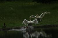 Die Umkircher Singschwäne steigen für ihre Flugrunden immer wieder in den Umkircher Himmel auf, doch sie blieben dem Queen-Auguste-Victoria-Park treu. Schwäne zählen zu den Welt-Meistern der Monogamie; ein Schwanen-Paar bleibt sich lebennslang treu. Dieses Jahr hat sich das Singschwäne-Paar für die Geburt ihrer Jungen Christi Himmelfahrt ausgesucht. An diesem 40. Tag des Osterfestkreises feiern die Christen die Rückkehr Jesu Christi als Sohn Gottes zu seinem Vater in den Himmel. Nach 35 Brut-Tagen erblickten am 17.5.2012 vier junge Singschwäne in Umkirch das Licht der Welt. Wie der Name schon sagt, kann der Singschwan ausdrucksvoll singen. Aus dieser Eigenschaft leitet sich seit der Antike die metaphorische Gleichsetzung des Schwans mit dem Dichter her. Singschwäne sind auch auf der finnischen 1-Euro-Münze abgebildet. Die Singschwäne (Wissenschaftlicher Name Cygnus cygnus) gehören zur Familie der Entenvögel in der Gattung der Schwäne. Es sind Brutvögel der osteuropäischen und sibirischen Taiga. In Umkirchs Queen-Auguste-Victoria-Park wurden vor rund 15 Jahren zwei Pärchen Singschwäne ausgesetzt. Sie brachten inzwischen zahlreiche Jungen zur Welt. Jedes Jahr werden die Jungschwäne (wenige Tage nach ihrer Geburt) schon Opfer von Raubvögeln. Im letzten Jahr hat nur ein Jungschwan überlebt. Dennoch ist das Ensemble des Umkircher "Singschwan-Orchesters" in den letzten Jahren auf insgesamt 12 Mitglieder (Singschwäne) angestiegen. Nachdem Park-Fotograf Achim Keller die Schwäne aufgenommen hatte beobachtete auch Singschäne-Fotograf Werner Trageiser Umkirchs Entenvögel; es gelangen ihnen erstaunliche Schnappschüsse.