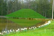Der Frühling ist da im Queen-Auguste-Victoria-Park: Erdkegel im Spiegel des Wassers (Bild: Regionalia)